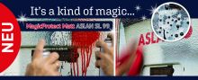 Die Schutzfolie MagicProtect Matt ASLAN SL 99 schützt Digitaldrucke und andere Untergründe zuverlässig vor Vandalismus durch Graffiti und Schmutz. Auf der matten Oberfläche der selbstklebenden Folie perlen Sprühlacke und Schmutz ab wie Wasser von einer Lotusblüte.