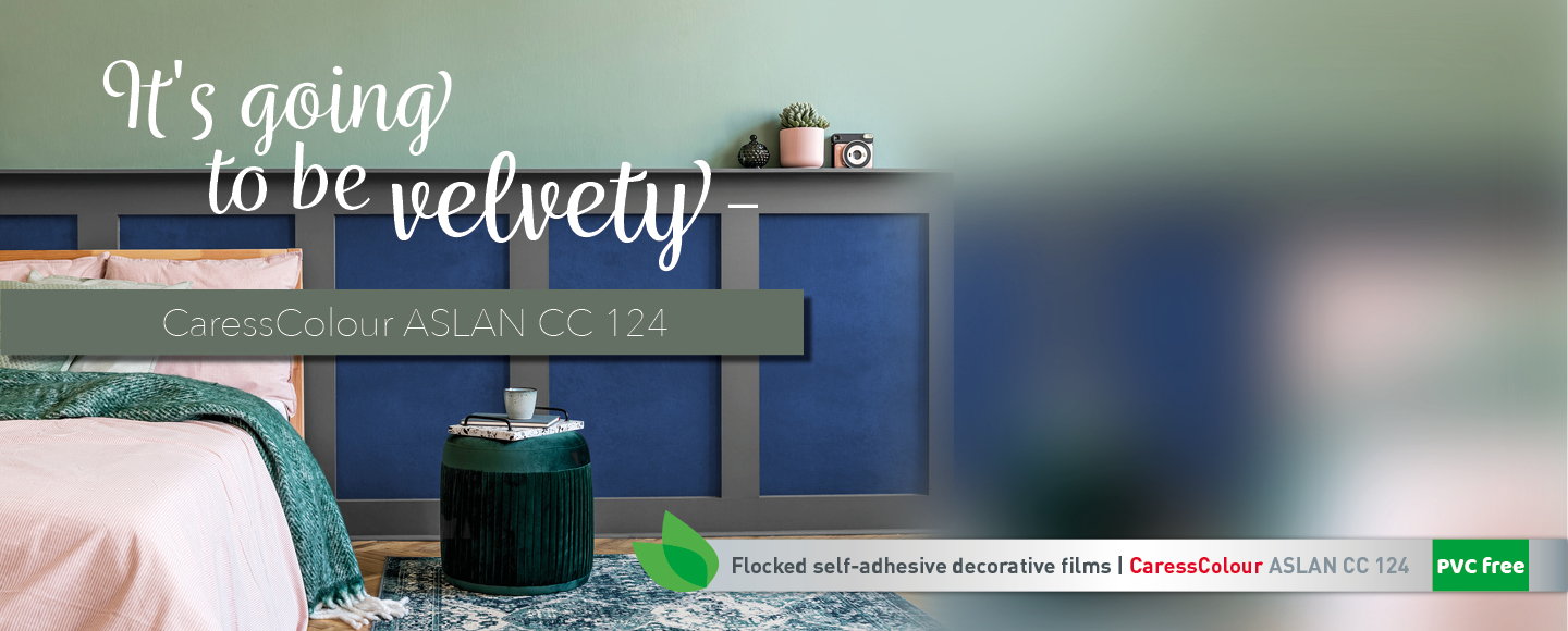 The year has a velvety start – with the new CaressColour ASLAN CC 124, a flocked, self-adhesive decorative film in 15 colours. This visually stunning film with its plush, tactile feel can be used for full surface coverage or plotter cut graphics.