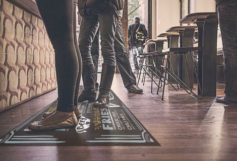 Nicht nur die Rutschhemmung, sondern auch die direkte Bedruckbarkeit und rückstandsfreie Ablösbarkeit machen das Produkt zur sicheren und gleichzeitig effizienten Floor Graphics-Lösung für den Einsatz am Point of Sale, in Flughäfen, Bahnhöfen, Einkaufszentren, Messen u. v. m.