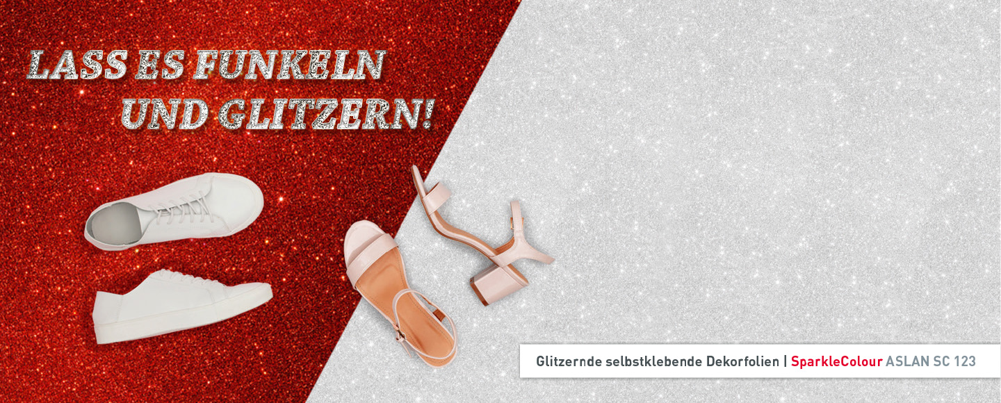 Wenn es glänzt und glitzert, muss nicht zwingend schon Weihnachten sein – Sie könnten auch einfach die neue Selbstklebefolie SparkleColour ASLAN SC 123 vor sich sehen! Die sechs aufregenden Farbtöne Gold, Silber, Schwarz, Weiß, Rot und Grün (in Kürze erhältlich) warten nur auf ihren Einsatz, ob als geplottete oder vollflächige Anwendung auf allen glatten Untergründen. Das ist Ihnen nicht genug? Dann haben wir eine gute Nachricht, denn ab einer Mindestbestellmenge von nur 500 lfm können wir Ihnen noch 30 weitere, glitzernde Farbtöne anbieten.